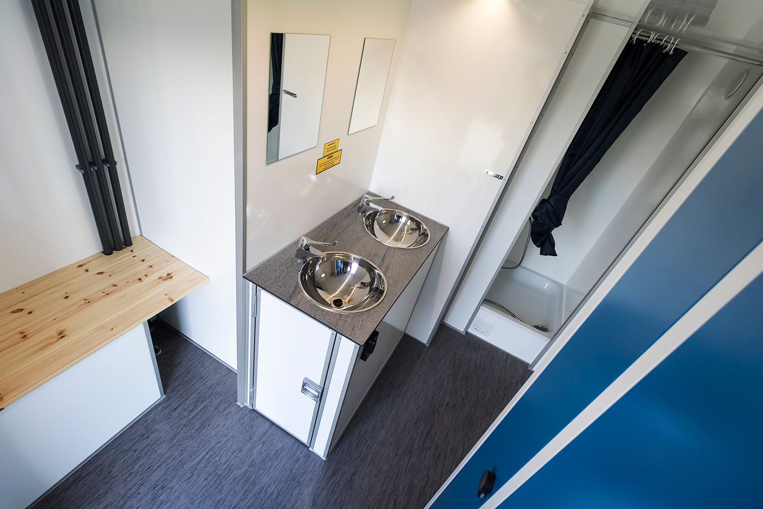 Vognen består af to afdelinger. Afdeling 1 er beregnet til opbevaring af snavset arbejdstøj og indeholder skabe, en håndvask og en bruseniche. Afdeling 2 indeholder skabe til rent tøj, et spiserum samt et toilet. De to afdelinger er forbundet, så man let kan bevæge sig fra den ene til den anden.