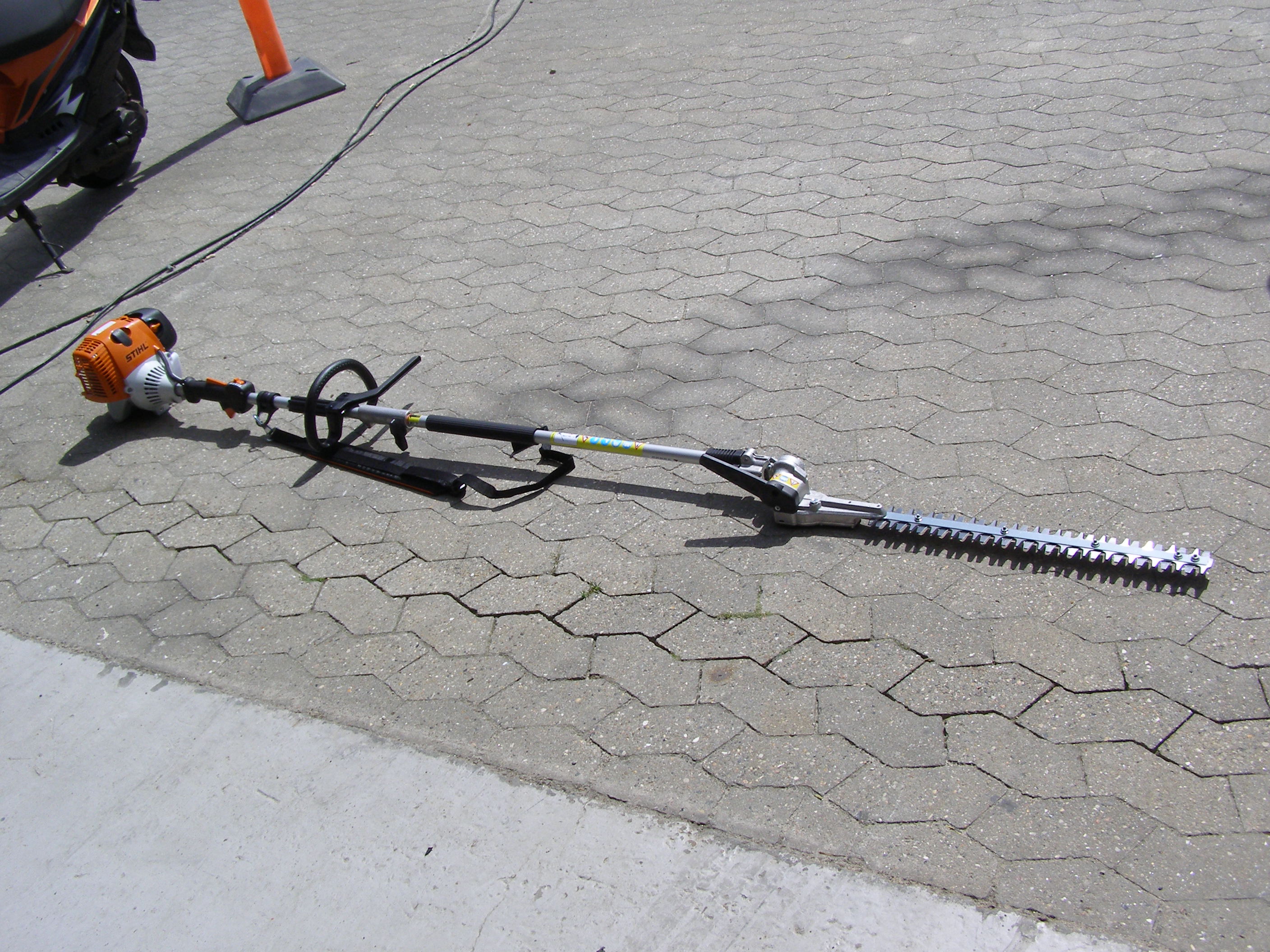 Stihl med kæde/busk/hækklipper smart maskine. Der kan sættes forlænger i.