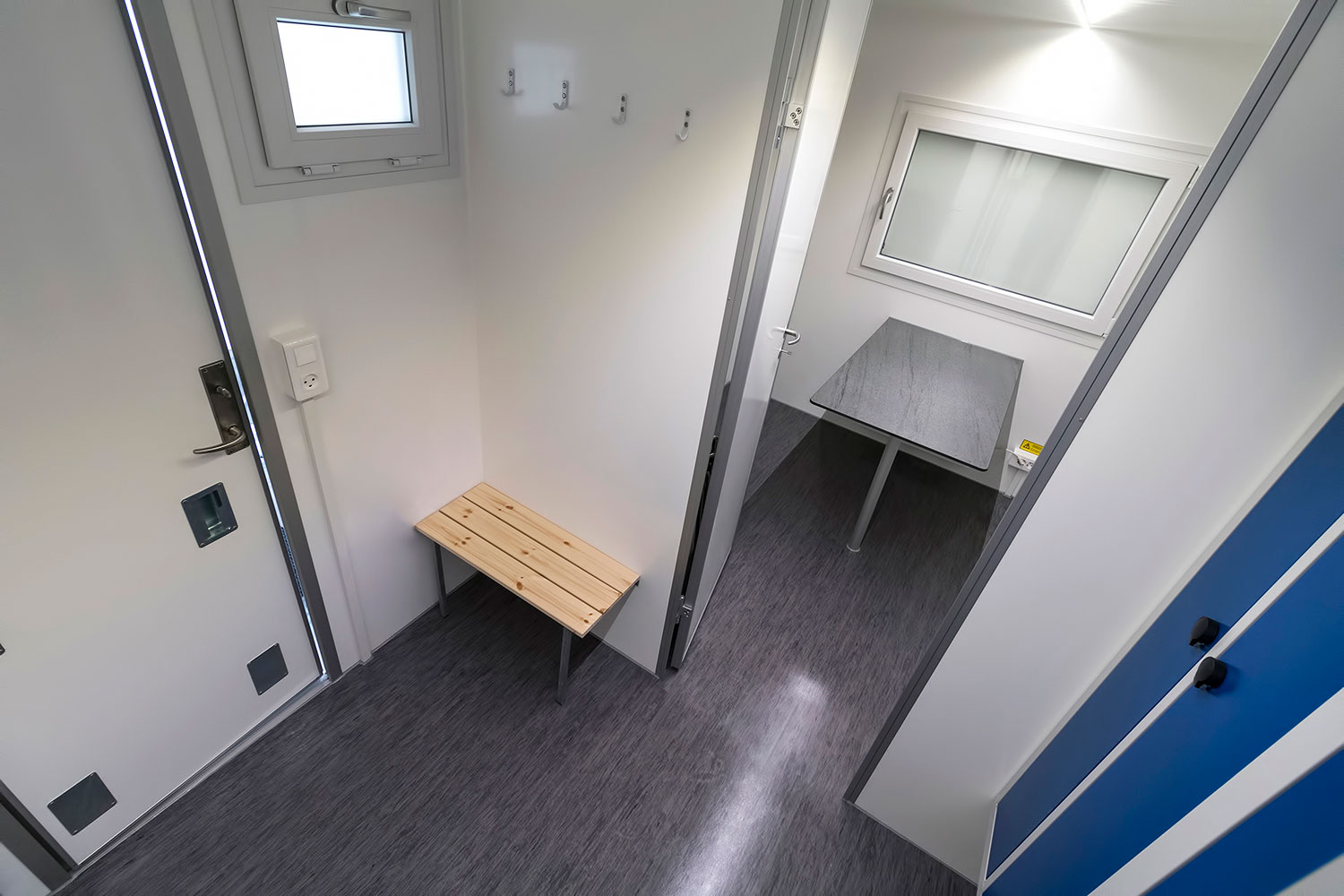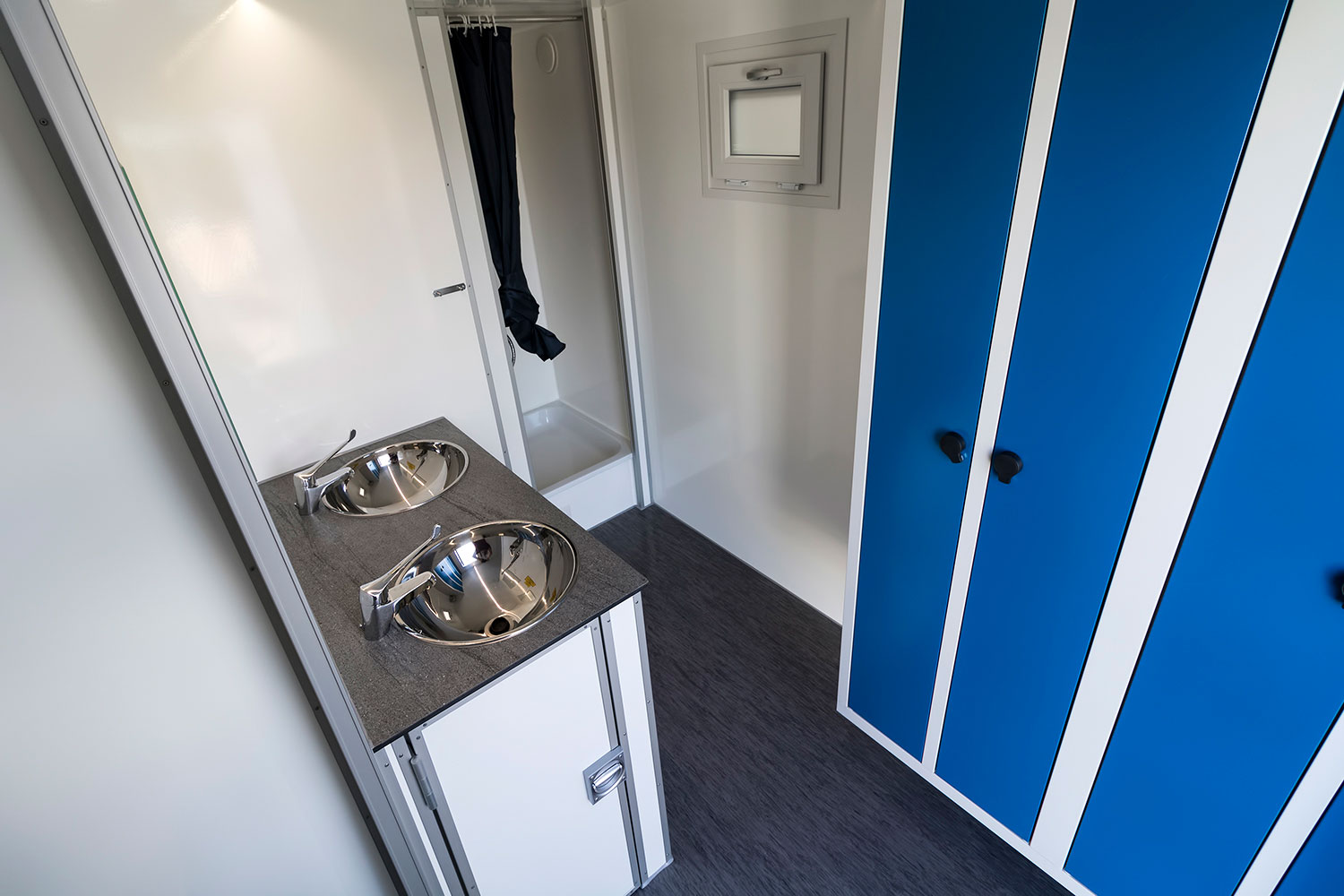Vognen består af to afdelinger. Afdeling 1 er beregnet til opbevaring af snavset arbejdstøj og indeholder skabe, en håndvask og en bruseniche. Afdeling 2 indeholder skabe til rent tøj, et spiserum samt et toilet. De to afdelinger er forbundet, så man let kan bevæge sig fra den ene til den anden.