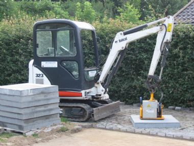 Monteres på minigraver for løft af tunge emner fliser m.m.