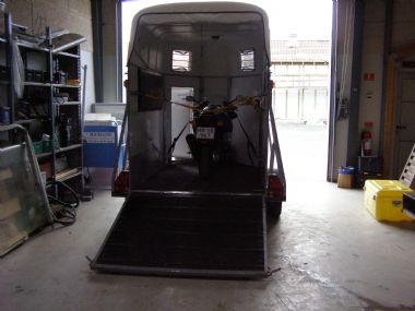 bagrampe = 150 cm højstøtteben, næsehjul, 2 aksler, reservehjul, loftlys